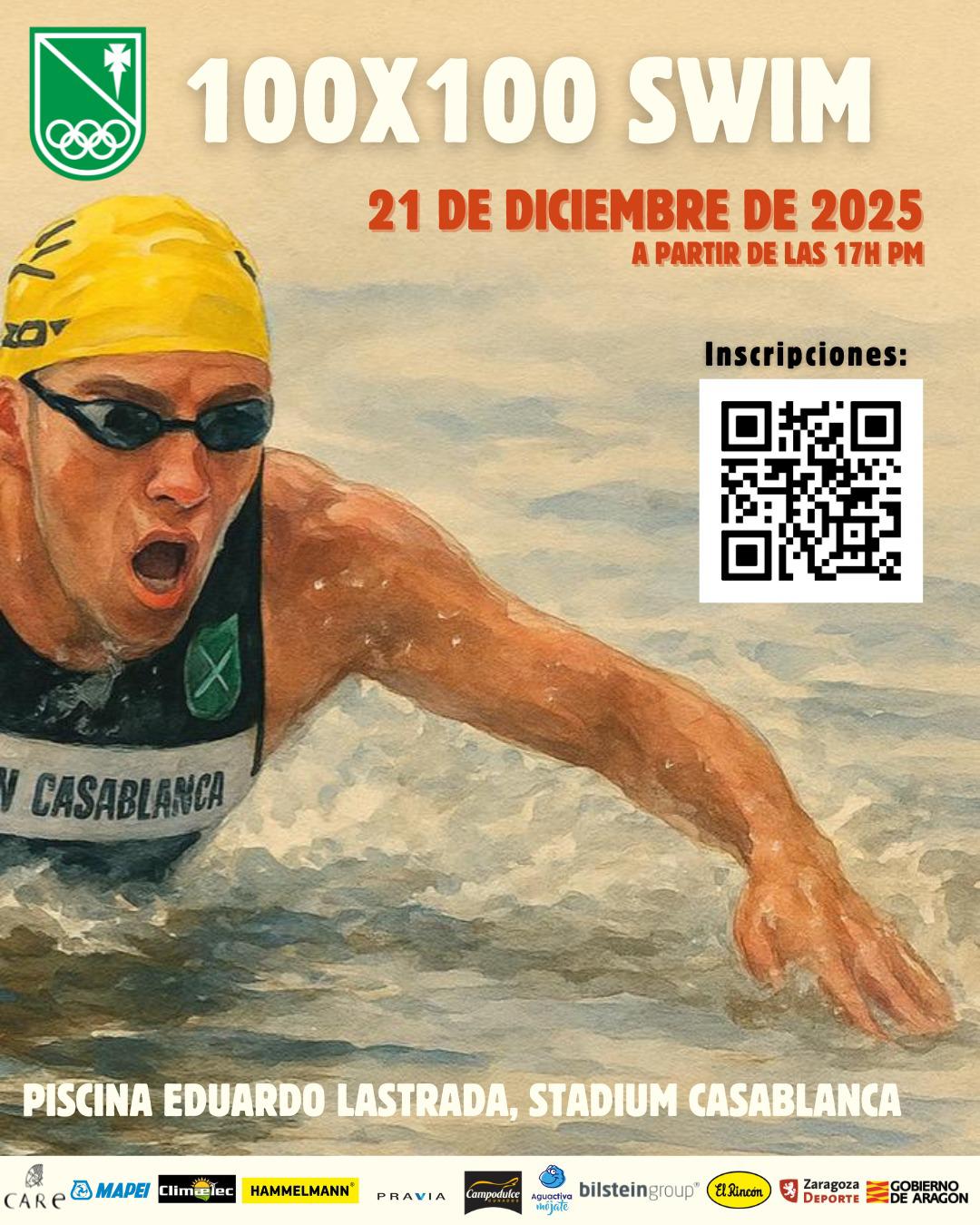 La prueba 100x100 SWIM es una competición de natación por equipos entre 6 y 10 personas donde hay que completar una distancia de 10.000 metros en relevos de 100 m. Todos los equipos deberán ser mixtos, de entre 6 y 10 participantes, estando formado por al menos tres personas de cada sexo. La edad mínima para participar será de 15 años cumplidos en 2025 (nacidos 2010), no habiendo edad máxima. Se establecen las siguientes Categorías: