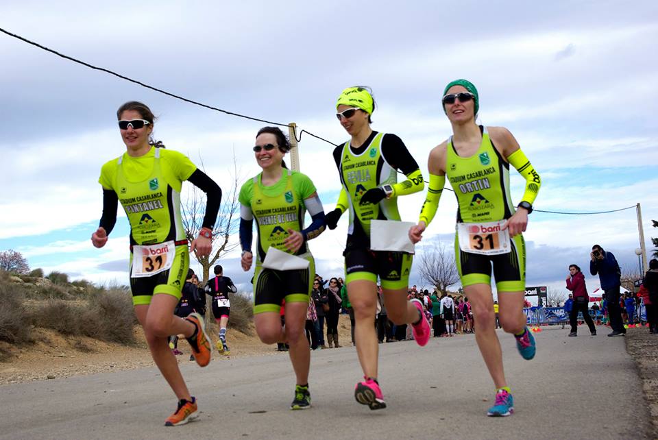 Igual de emocionante estuvo la competición Elite femenina que por tan solo 13 segundos arrebató Stadium Casablanca - Almozara 2000 (Pintanel, Revilla, Ortin, Vicente de Vera) al Club Triatlón Europa (Peñalva, Bareas, Abián, Andueza, García) que acabaron subcampeonas. El tercer puesto fue para la escuadra navarra del Valle de Aranguren, mientras que la medalla de bronce del Campeonato de Aragón correspondió en este caso a la escuadra aragonesa del Triatlón Cierzo (García, Valenzuela, Gil, Morelli, Navarro, Bernal).