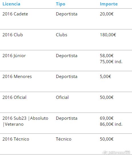 Tal como viene sucediendo las últimas temporadas, tanto los clubes como los deportistas, técnicos, y oficiales podrán tramitar sus licencias federativas para la próxima temporada en las últimas semanas de diciembre para poder tener activa la licencia desde el 1 de enero de 2016.