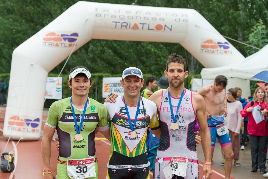 En categoría masculina se cumplía el pronóstico y fue Victor del Corral (Triactiv Lanzarote) que tras perder unos segundos en la natación y una caída en el comienzo del segmento de ciclismo, rápidamente se sobrepuso y mostro su calidad para llegar en solitario a Zuera donde pudo disfrutar de un circuito nuevo de carrera a pie, aunque esta vez estaba embarrado debido a las lluvias de toda la mañana. Tras el entro el ganador del 2015 Juan Mina (StadiumCasablanca - Almozara 2000) con una gran competición pudiendo salir por delante de Victor del Corral en el segmento de natación, y en tercera posición entro Ricardo Simón (Club Triatlón Europa) tras un gran sprint con el ganador de 2016 y actual bicampeón de Aragón de triatlón, los cuales hicieron vibrar con este gran final.