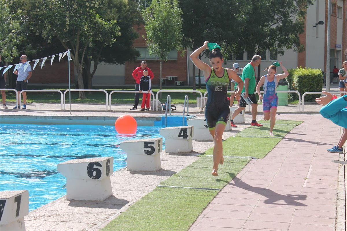 Javier Galván y Carlota Juste ganan en casa el acuatlón escolar