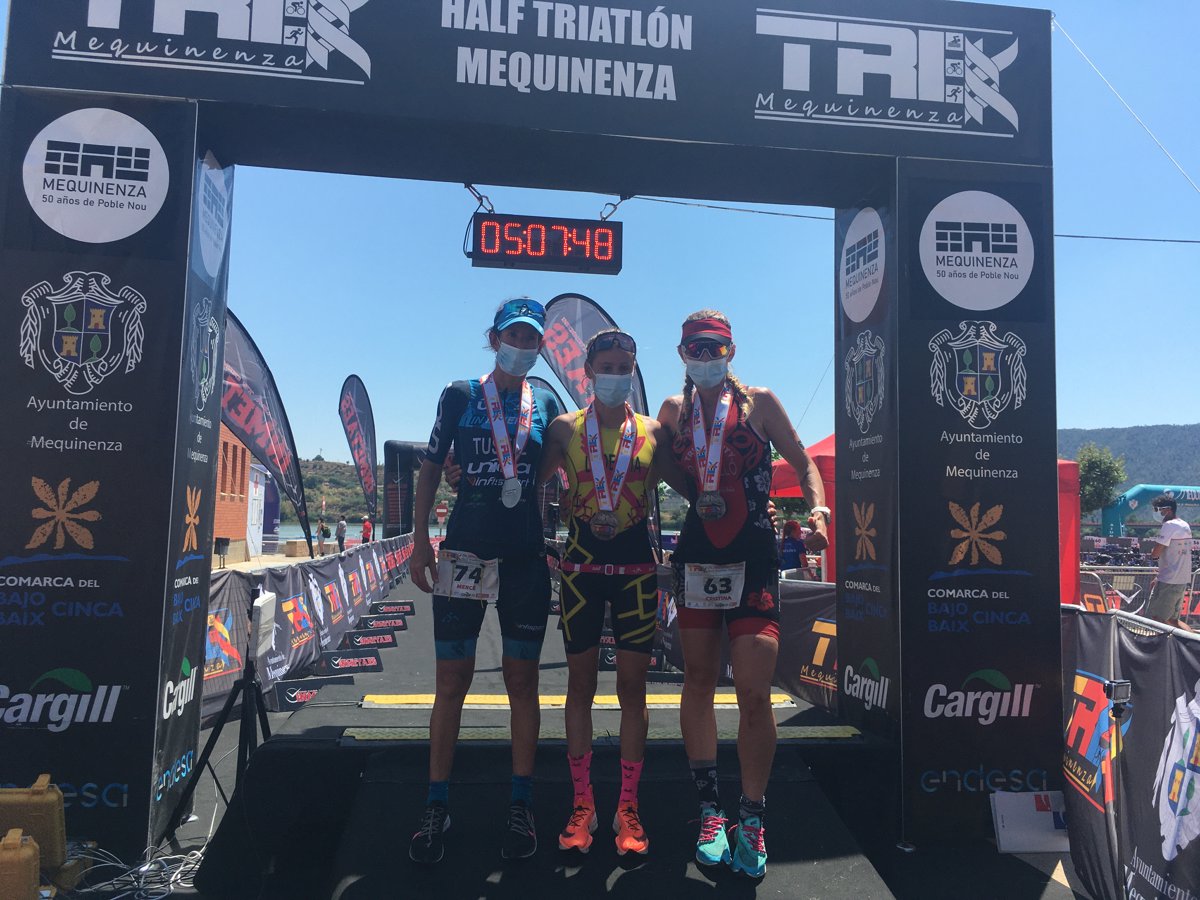 La competición femenina ha estado liderada desde el primer segmento de natación por la catalana Eva Ledesma (Club Esportiu 4.40) que se ha impuesto en línea de meta con un tiempo de 4:47:45, sacando más de 10 minutos a la segunda clasificada Mercé Tusell (Club Triatló Granollers). El bronce ha sido para Cristina Roselló (Tri Infinity Móstoles). El campeonato de Aragón de la disciplina se lo ha adjudicado Esther Ruiz (Club triatlón Europa) que ha sido la única triatleta aragonesa capaz de completar los exigentes recorridos diseñados por la organización.