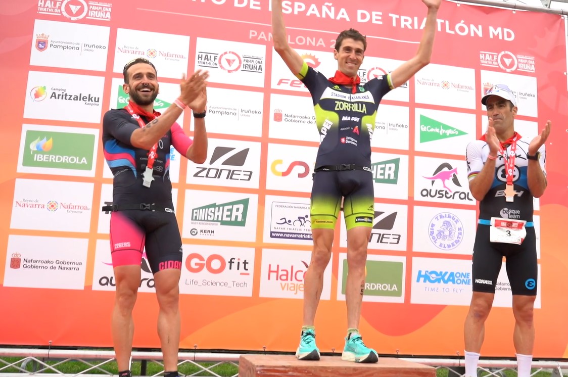 El zaragozano Fernando Zorrilla (Stadium Casablanca Mapei) se ha impuesto hoy en el Campeonato de España de Triatlón Media Distancia 2022 disputado en Pamplona, firmando una de las actuaciones más brillantes de su carrera deportiva y de la historia del triatlón aragonés. Desde hace varias temporadas, Fernando Zorrilla se ha confirmado como uno de los más temidos y mejores triatletas élite nacionales. Su actuación en el Half Triatlón de Pamplona, que se ha disputado en las distancias 1,90 kilómetros de natación, 85 kilómetros de ciclismo no drafting y 19,50 kilómetros de carrera a pie, le permite ya ser una de las referencias más importantes del triatlón español. Además, se trata de un triatleta que brilla en varias disciplinas ya que, a la medalla de oro obtenida hoy en Triatlón MD, se suman las de bronce en Triatlón de invierno, o del campeonato de España de Duatlón en 2021. El triunfo de hoy en el nacional de Media Distancia le otorga billete para el Campeonato de Europa de Triatlón MD que se celebrará el 24 de septiembre en Bilbao, por lo que seguirá sumando participaciones internacionales con la selección española de triatlón.