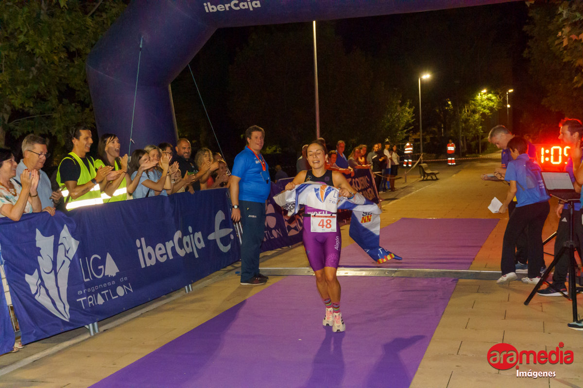 Más contundente fue la victoria de Erica Villa (Alagón Triatlón) en la competición femenina que invirtió un tiempo de 1:05:41, marcando los mejores parciales en los dos primeros segmentos de la competición. Tan solo pudieron seguir su estela Olatz Rivera (JAB Triatlón Helios) que llegó segunda a más de un minuto de la vencedora y Marta Castro (Triatlón Cierzo) que llegó tercera con una desventaja en meta de 2:25.