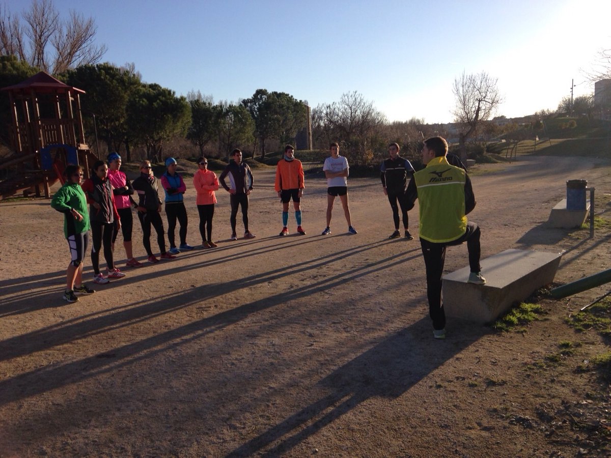 La primera sesión fue en el agua y realizamos un test en el que se simulan los ritmos que se llevan en competición fraccionando la distancia de 750 en: 50m rec:20'', 100m rec:15'', 150m rec:10'', 200m rec:5'' y 250m. Tomamos los tiempos de paso de cada 50 y la frecuencia de brazada y analizamos estos parámetros. Por la tarde realizamos una sesión de carrera a pie combinada con ejercicios de fuerza aplicados al gesto de la carrera, ejercicios de técnica de carrera y unos progresivos finales. Por último realizamos una sesión de flexibilidad y prevención de lesiones.