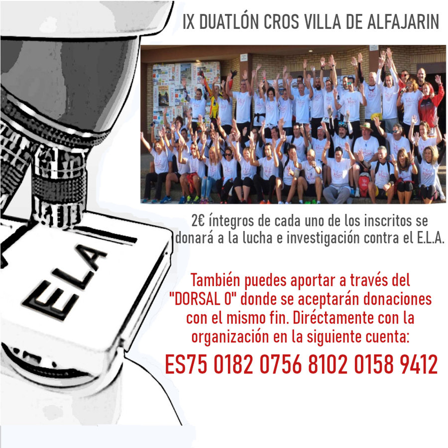 2€ íntegros de cada uno de los inscritos se donará a la lucha e investigación contra el E.L.A.