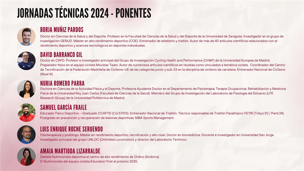 La Federación Española de Triatlón, el Gobierno de Aragón y la Federación Aragonesa de Triatlón organizarán el sábado 23 de noviembre de 2024 las Jornadas Técnicas de Triatlón, “Avances en el entrenamiento de triatlón”. Se trata de una propuesta formativa que propone anualmente la Escuela de Entrenadores de la FETRI, de gran nivel técnico, que se desarrollará desde las 10h. hasta las 19:30h. en el salón de actos de la Residencia Baltasar Gracián (C/. Franco y López nº4, Zaragoza) y contará con las siguientes ponencias: